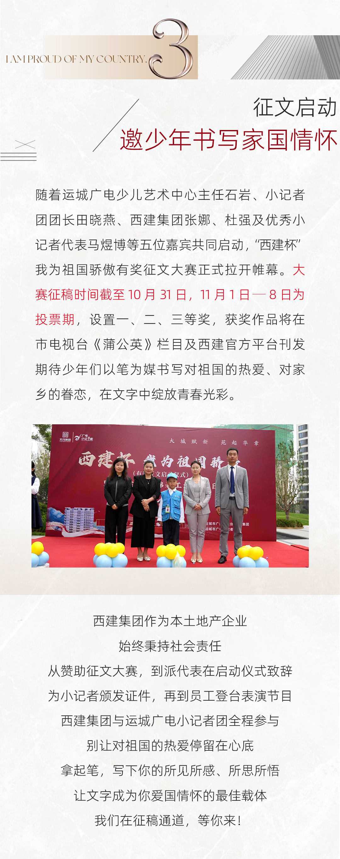 以文抒懷 以愛傳情|「西建杯」我為祖國驕傲有獎?wù)魑膯觾x式圓滿舉辦